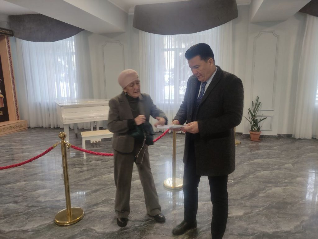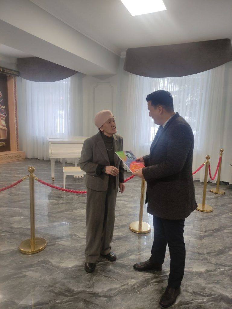 Sapar dawamında filialımızdıń «Ulıwma kásiplik hám social-gumanitar» kafedrasınıń asisstent oqıtıwshısı Gúlmaryam Kamalovanıń kompozitor Dariko Jańabaevaǵa arnalǵan»Kompozitor Dariko Djanabaeva» atlı monografiyasın direktorımız R.Allanbaev kompozitor Dariko Djańabaevaǵa óz qolları menen tapsırdı.