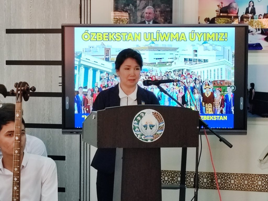 “Ózbekstan – ulıwma úyimiz”, “Milletler aralıq doslıq, keńpeyillik – Ózbekstan rawajlanıwınıń tiykarı” atamasındaǵı ilajdı Ózbekstan mámleketlik konservatoriyası Nókis filialı direktorı R.Allanbaev ashıp berdi. Ilajǵa Qaraqalpaqstan Respbulikası Joqarǵı Keńesi deputatı V.Kalenova, Nókis qalası “Nuranıylar” qorı baslıǵı K.Kalenderov, Qaraqalpaqstan musılmanlar qazıyatı qazı orınbasarı A.Jolawshiev, Xalıq deputatları Nókis qalalıq Keńesiniń deputatı Z.Seytniyazovalar qatnasıp, olar óz sózinde, elimizde barlıq millet hám xalıqlardıń tili, mádeniyatı, úrp-ádet hám dástúrlerin saqlaw jáne rawajlandırıw ushın barlıq sharayatlar jaratılǵanlıǵı, elimizde ótkerilip atırǵan usınday is-ilajlar milletler ara tatıwlıqtı elede bekkemlewge xızmet etetuǵınlıǵın atap ótti.